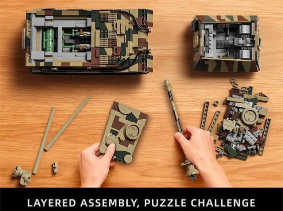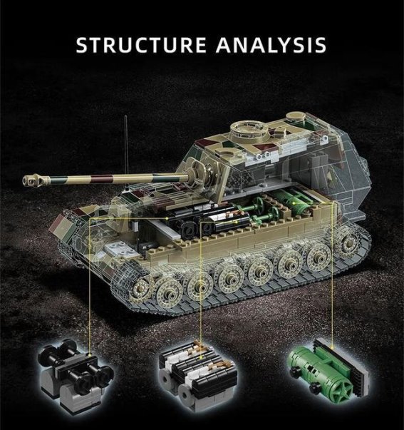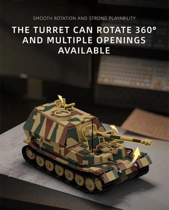 12GO的象式坦克歼击车模型尺寸为3012.213.6cm,比例为1:28,颗粒数超过1750个。模型在尺寸上的表现,能够让收藏者更加直观地感受到坦克的庞大与威猛。更重要的是,12GO在这款模型的制作中,采用了先进的工艺手段,确保了每一处细节的精准还原。从车体的灰色原皮到炮塔的精密设计,每一部分都尽力呈现出最真实的历史感。