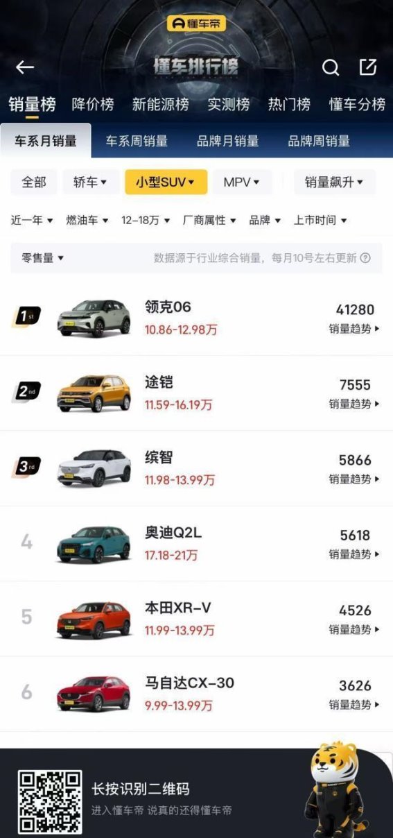领克06的市场表现无疑是其成功的重要证明。自上市以来,领克06以其出色的产品力和精准的市场定位,迅速在小型SUV市场占据了重要一席之地。30万辆的销量,不仅使其成为10万级小型SUV的销量冠军,更印证了它在年轻消费群体中的巨大吸引力。对于领克来说,这个销量数字不仅仅是一个硬性的数字,它代表了品牌的崛起,更是对消费者选择的肯定。