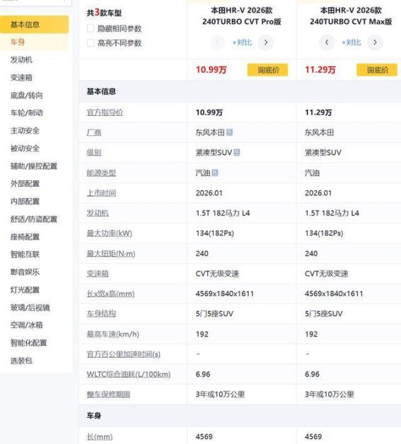 最近,汽车市场的焦点无疑是全新2026款本田HR-V的上市。这款专为家庭市场设计的合资SUV,以其诚意满满的定价吸引了不少消费者的关注。全新HR-V推出了Pro版和Max版两款主力车型,售价分别为10.99万元和11.29万元,相比于老款,价格大幅下调,不仅降低了购车门槛,还让消费者更容易接受这款车的价格。在这款车的各项设计中,本田秉承了稳定可靠的品牌基因,依旧保持了核心三大件的高水准,同时对车辆的实用配置做出了针对性升级,使得这款车在同价位合资SUV中展现出了独特的性价比优势。