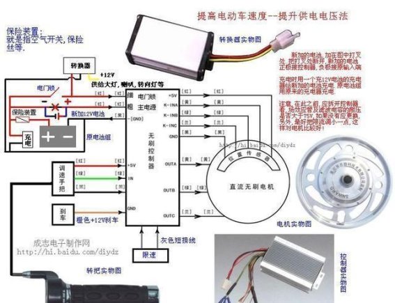 电动车控制器的作用就如同大脑,它不仅调节电机的转速,还保证电动车在骑行过程中的平稳运行。控制器的工作原理十分复杂,它通过霍尔传感器接收加速转把的信号,进而决定输出的电流大小。电流大小的变化与转把的转动幅度直接挂钩,转把转动幅度小,输出电流就小,电机转速低;转把转动幅度大,电流增大,电机转速也随之提高。