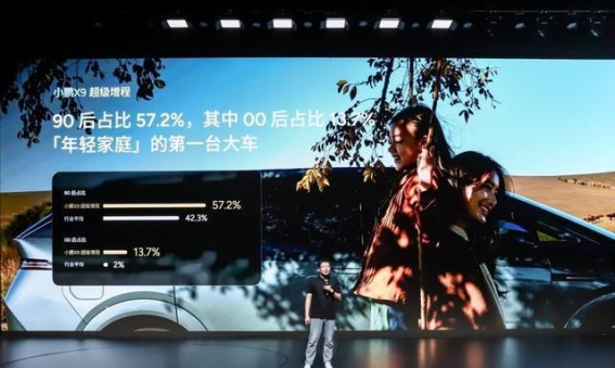 小鹏X9超级增程自推出以来,便凭借其独特的产品定位赢得了大量年轻家庭的青睐。作为一款全新一代的家用MPV,小鹏X9超越了传统MPV车型的局限,吸引了大量90后和00后年轻用户。据调查数据显示,在小鹏X9的车主中,90后占比达到57.2%,00后占比为13.7%,而在整个MPV市场中,00后占比仅为2%。这意味着,小鹏X9的用户群体比传统MPV用户年轻了10岁左右,体现了小鹏X9的年轻化特征。