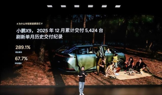 在传统MPV市场增速放缓的背景下,小鹏X9超级增程凭借其独特的设计和卓越的技术配置,逆势而上,成为MPV市场中的亮眼新星。2025年12月,小鹏X9的交付量达到5424台,同比增长289.1%,这一数据不仅让人惊叹,也展现了小鹏X9在市场中的强大吸引力和潜力。