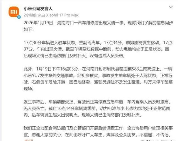 近年来,新能源汽车因其环保、经济的优势逐渐成为市场的主流。随之而来的安全问题也愈加引起公众的关注,尤其是新能源汽车火灾的事件频频发生。仅在2026年1月19日,便发生了两起新能源汽车火灾事件,令人深思。