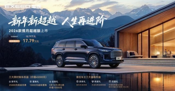 2026款星途揽月超越版无论是性能还是舒适性都达到旗舰级水平,而如今,购车者更可借此机会享受新春特惠。自2026年1月1日至1月31日,购车者可享受“超级置换价17.79万元”的优惠价格。首任车主还可尊享整车终身质保、终身免费基础流量、终身免费道路救援等三大无忧权益,为消费者提供了更全面的保障。