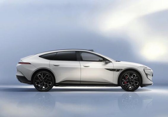 阿维塔12的车身侧面,展现了类似GT跑车的动感造型。优雅的车身腰线与弧线形车顶设计,使得整体外观既动感十足,又富有流线感。特别是半隐藏式车门把手的设计,简洁而不失高端,彰显了阿维塔12独特的设计风格。车门内凹的形态与电子外后视镜的搭配,也让车身侧面看上去更加流畅且具有未来感。