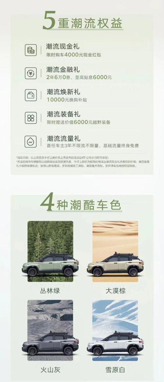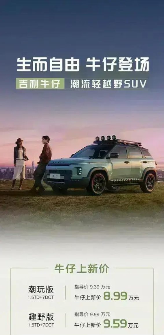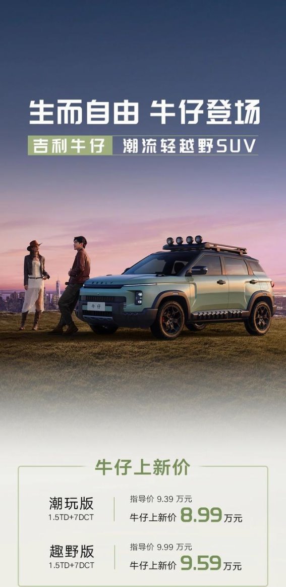 吉利牛仔的发布,不仅仅是吉利品牌在SUV市场的一次重要布局,更是轻越野SUV这一细分市场的全新开创者。从外观设计到内饰配置,从智能科技到安全性能,吉利牛仔都展现了出色的综合实力。更重要的是,以8.99万元起的价格,牛仔让更多消费者有机会体验到越野SUV的独特魅力。