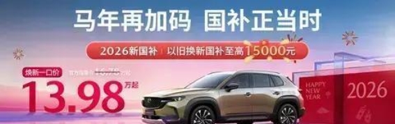 长安马自达CX-50凭借其卓越的性能、精致的设计和极具竞争力的价格,成功赢得了消费者的青睐。此次元旦的官方价格焕新与国家补贴的双重优惠,让这款SUV的性价比更加突出,也为消费者提供了一个轻松拥抱高品质出行的机会。无论您是日常通勤,还是准备开启一段郊外冒险,CX-50都将是您最值得信赖的出行伴侣。13.98万元起,焕新开“骉”,与您一同探索生活更宽的边界。
