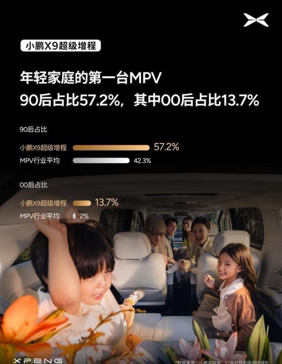 除了90后,80%的小鹏X9车主是从豪华品牌换购而来的,这一数据足以证明小鹏X9在品质和配置上的优势。对于年轻家庭来说,豪华品牌的车主通常对车辆的配置要求极高,而小鹏X9凭借其高端的配置和精致的工艺,成功吸引了这部分消费者。