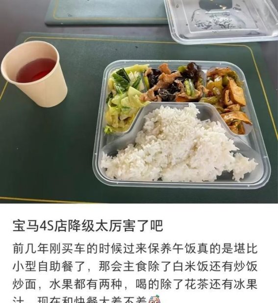 随着消费者需求的变化,传统豪车品牌的傲慢面容开始出现裂痕,曾经象征尊贵与奢华的4S店服务,如今也陷入了困境。BBA车主的体面,在一份简单的盒饭面前彻底崩溃。从以往精致的自助餐,到如今的廉价盒饭,传统4S店的服务水平急剧下降,甚至连车主们引以为傲的“尊贵感”也随之消失殆尽。