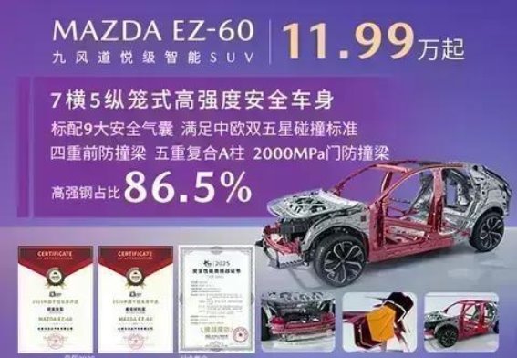 在汽车行业中,安全性从来都不是一个可以妥协的选项,尤其是在新能源车日益增多的今天,如何在提供驾驶乐趣的也能给乘客带来更强的安全保护,成为了许多车企的重中之重。马自达全新推出的EZ-60,在这一点上做出了突出的表率。这款中型SUV不仅具备先进的科技配置和出色的性能,更凭借其出色的安全表现,赢得了市场的广泛关注。