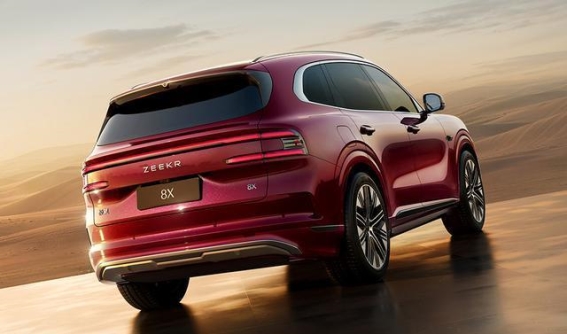 从外观设计来看,极氪8X的前脸采用了大面积的直瀑式镀铬中网,搭配纵横星钻分体式大灯,营造出了一种威严而豪华的气场。车身侧面线条流畅,腰线设计动感十足,突显出其运动化的特征。红色车漆与大尺寸轮圈的搭配,以及随处可见的镀铬饰件,都让车辆更具豪华感。而车尾的设计则展现了极高的辨识度,双层贯穿式尾灯与立体感十足的尾门设计,进一步增强了车辆的现代科技感。