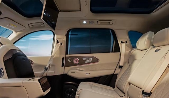 极氪8X的一大亮点便是其音响系统,车内搭载了Naim音响系统,这也是极氪8X保持豪华感的重要体现。作为高端车型,音响系统不仅提供了极致的音质享受,还展现了极氪8X对于细节的注重。车顶天窗采用了分段式设计,车内的开放感得到了进一步提升。而吸顶娱乐屏则摆脱了传统布局,显得更加简约而实用。后排座椅的设计同样值得称道,三张座椅都配备了头枕,副驾座椅支持大幅度前移,为乘客提供了极为舒适的乘坐体验。座椅通风、加热和按摩等功能的配置,也进一步增强了车辆的豪华性和舒适性。
